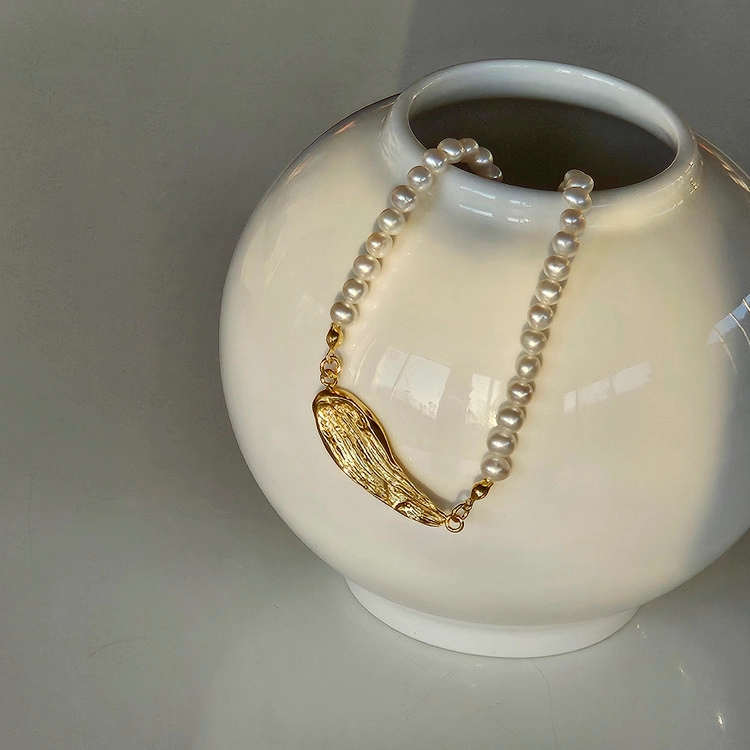 텍스쳐 오브제 스타일의 진주 목걸이입니다.
