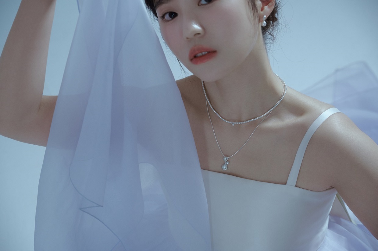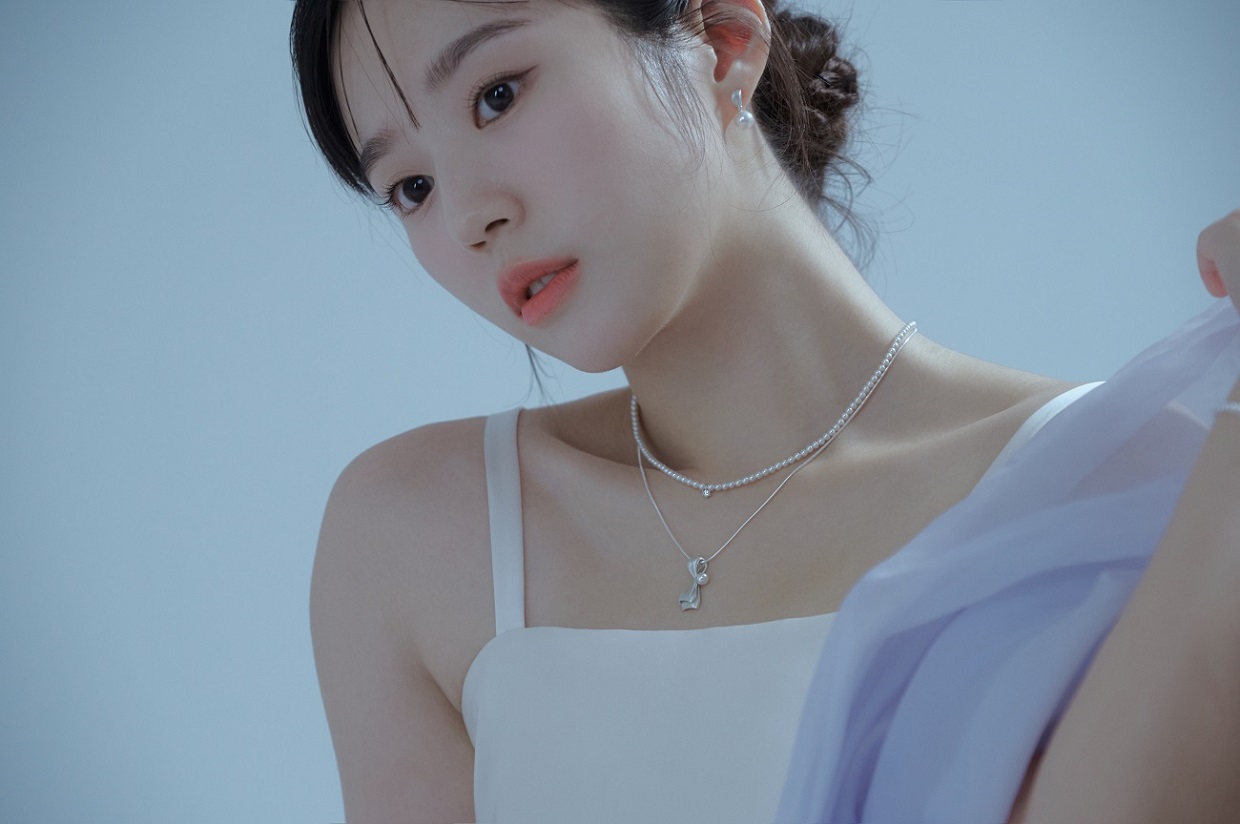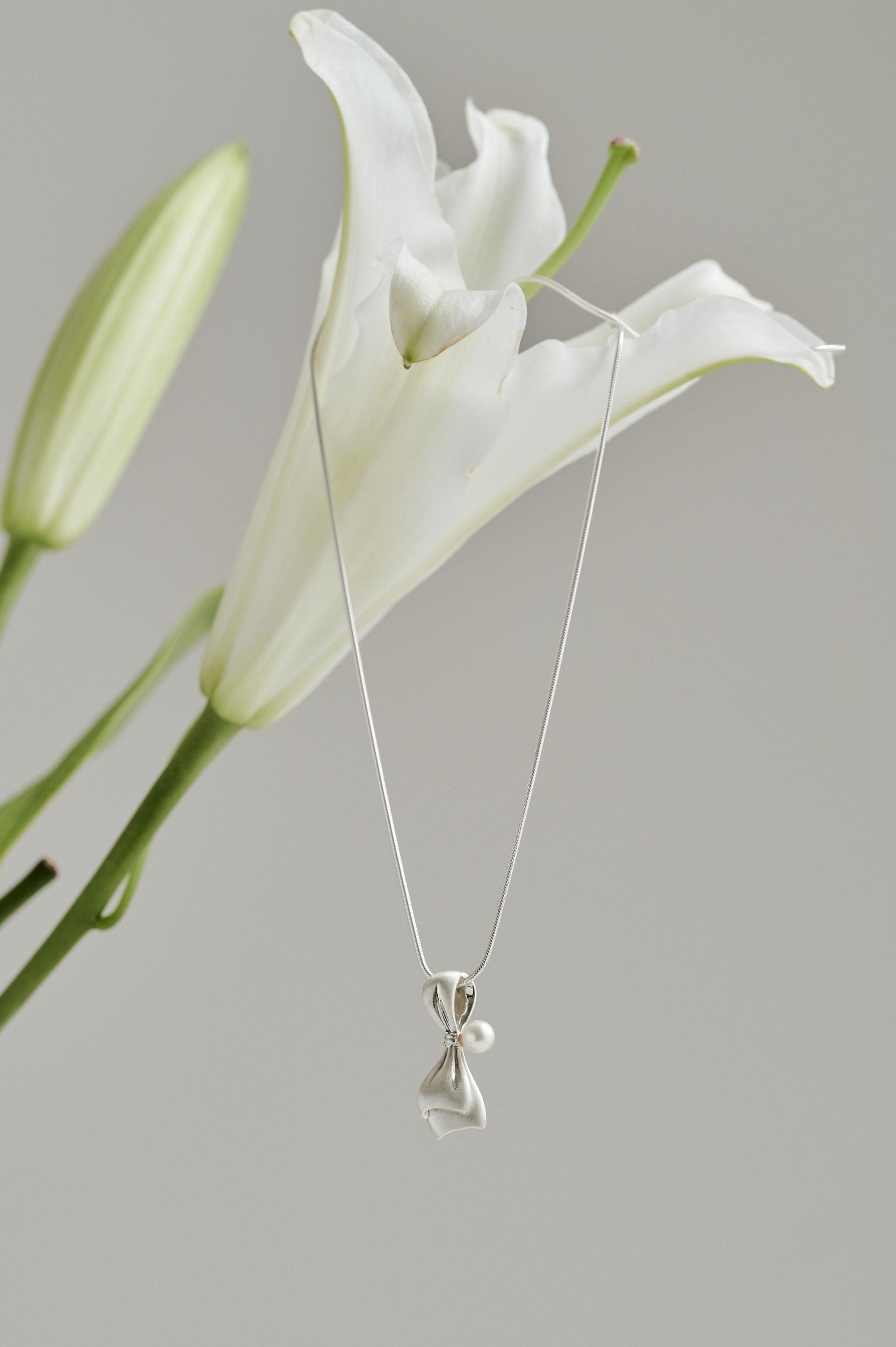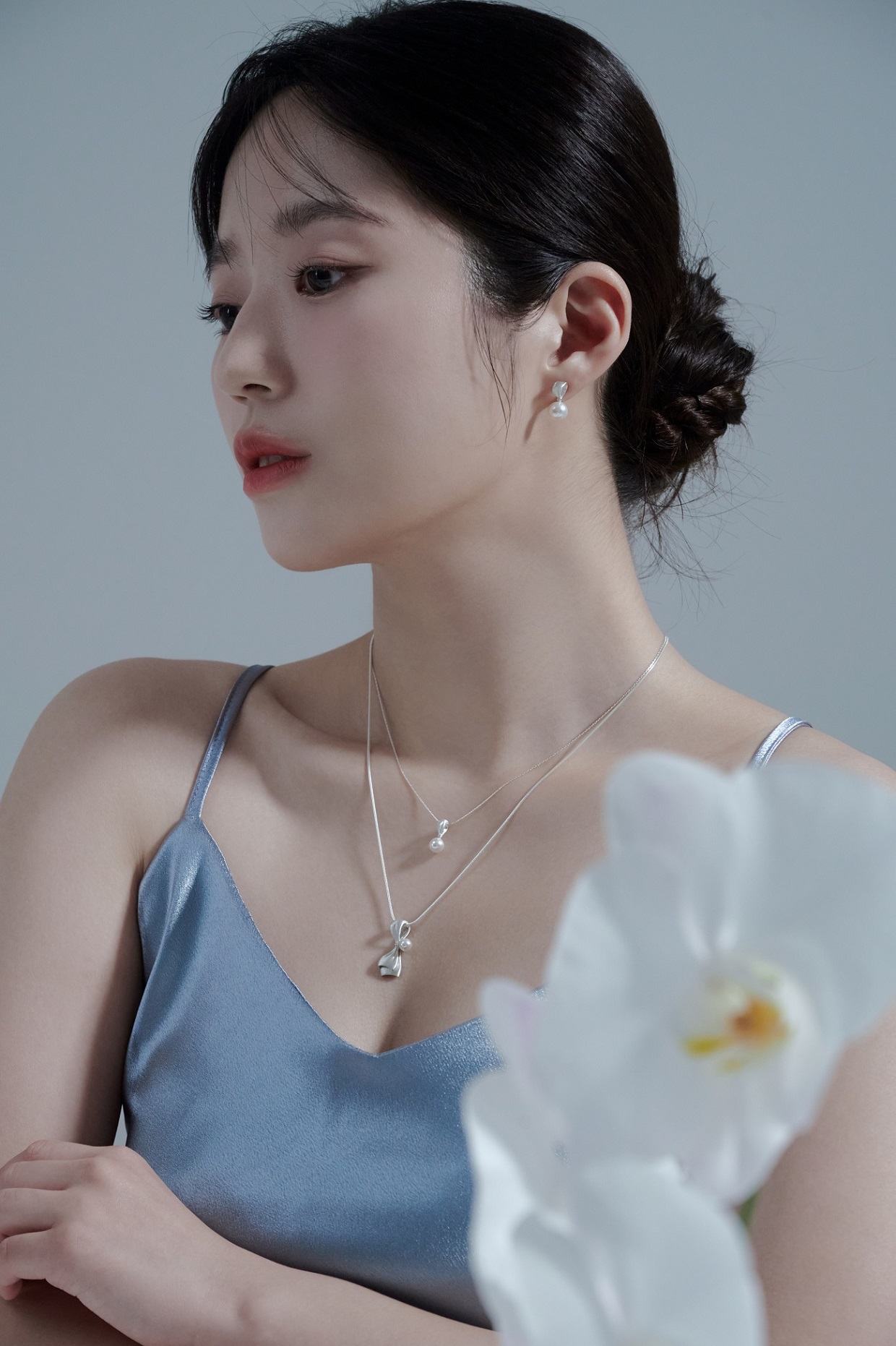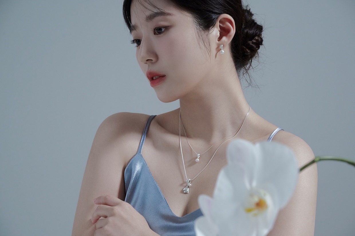 한복의 풍성한 치마 폭의 결을 형상화한 롱 기장의 목걸이입니다.