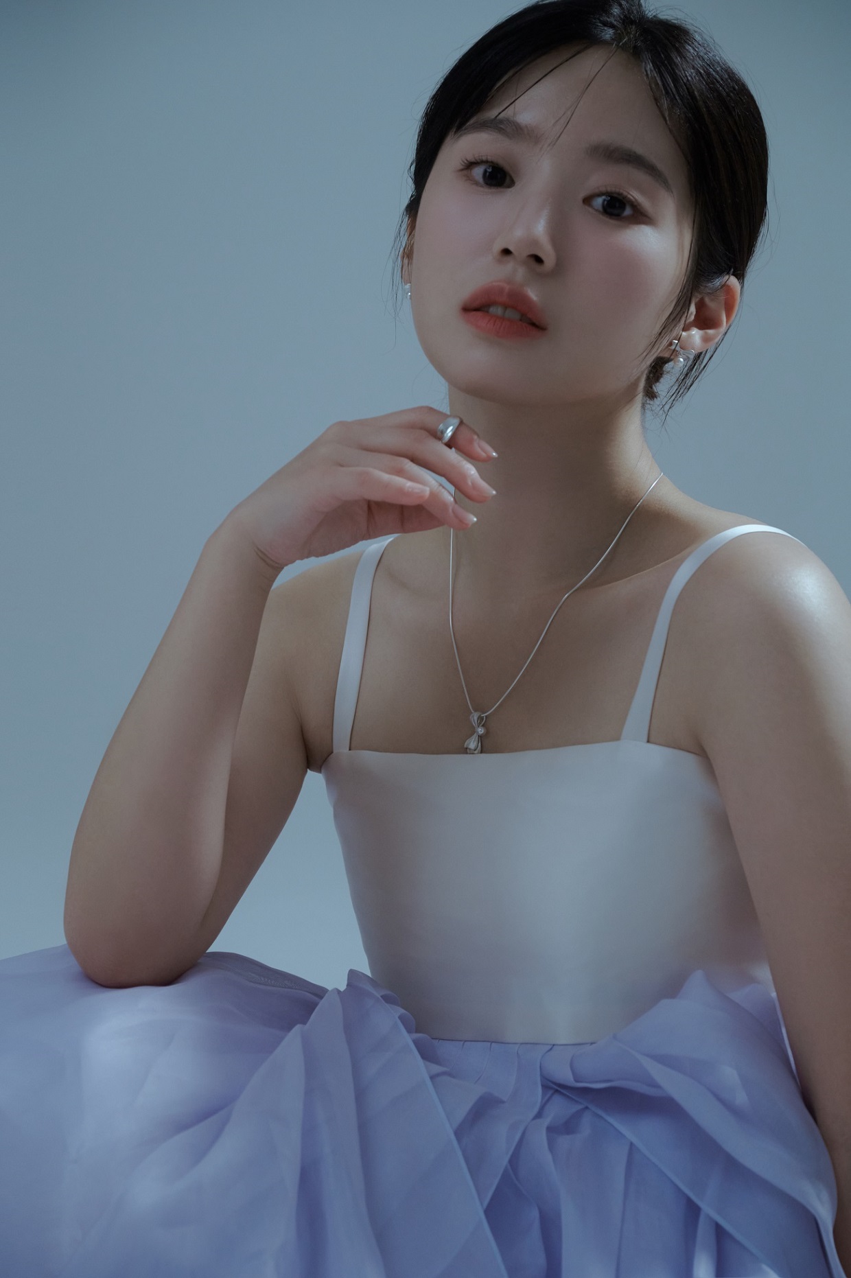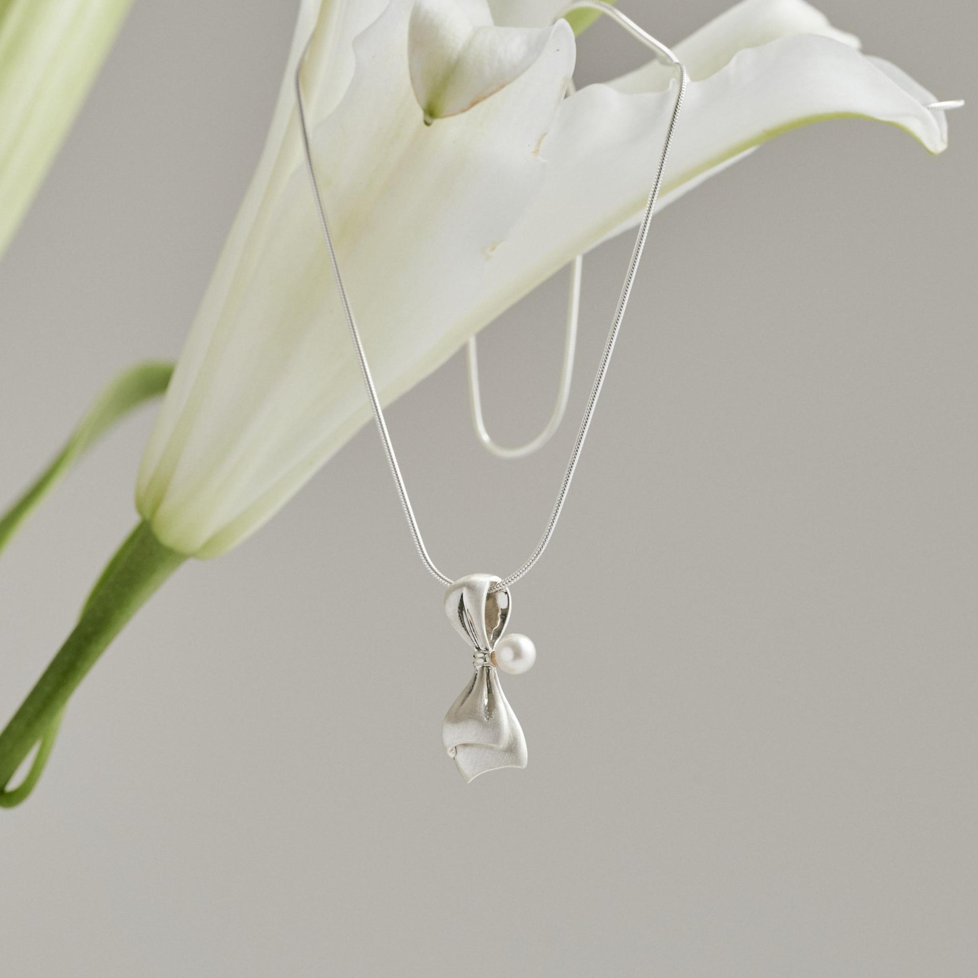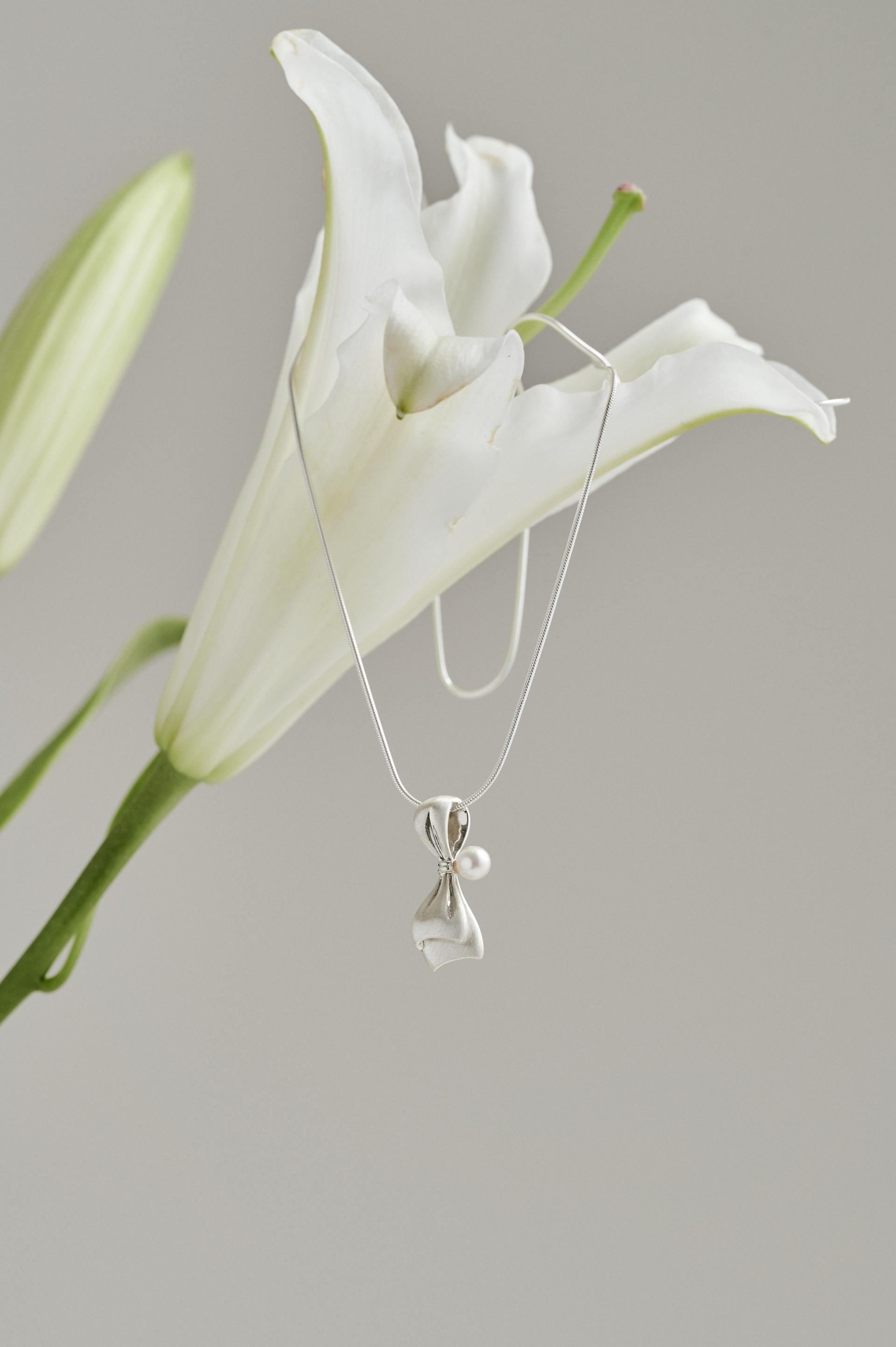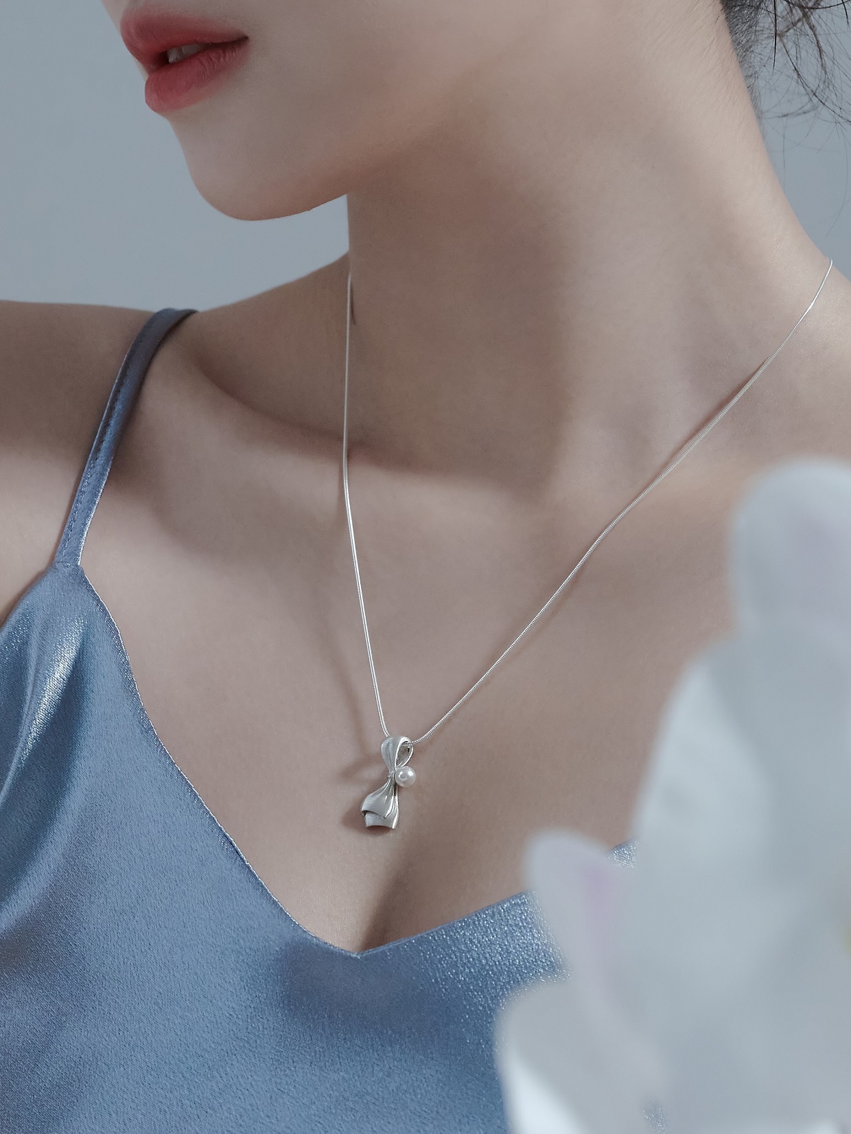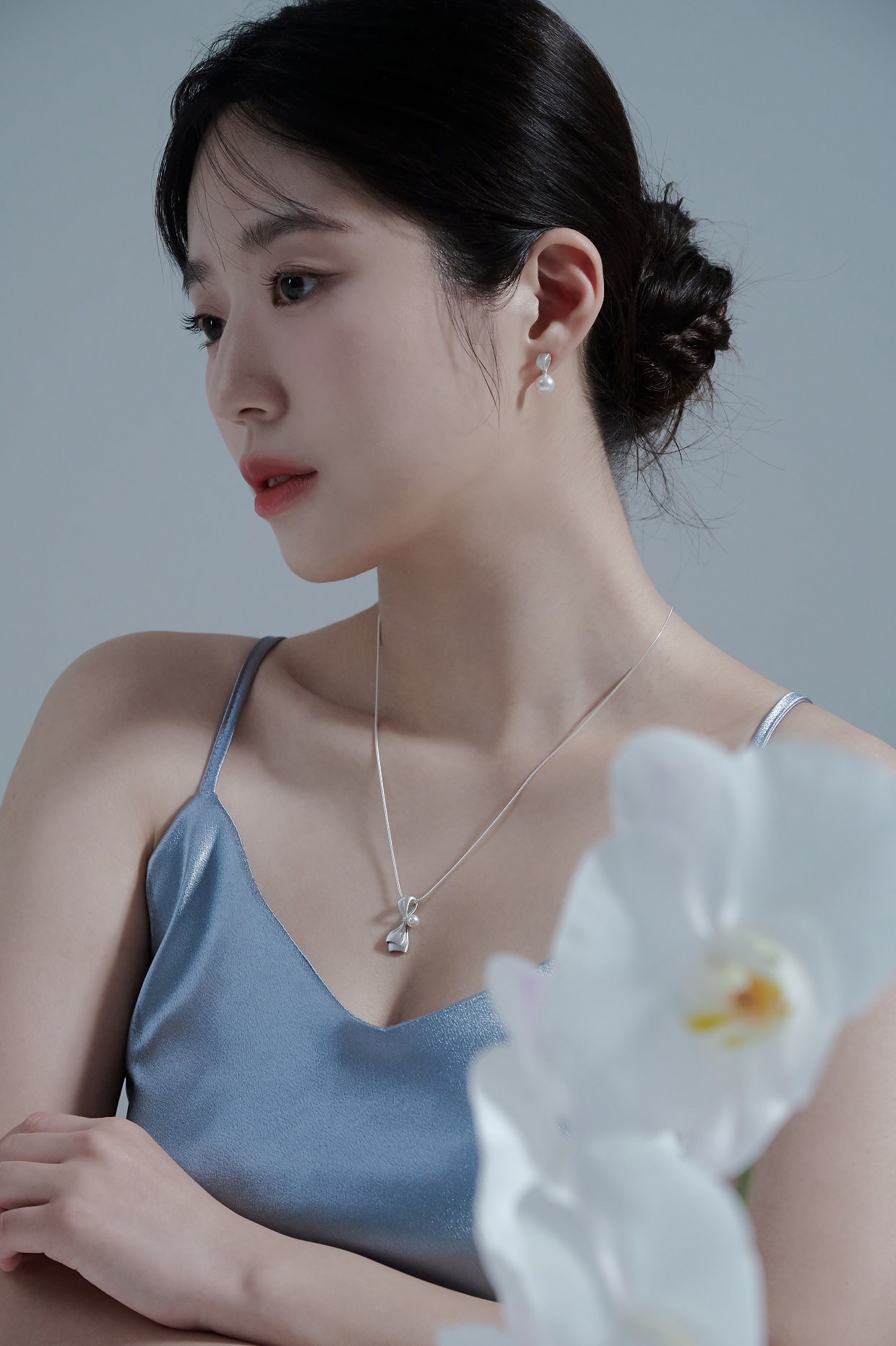 한복의 풍성한 치마 폭의 결을 형상화한 롱 기장의 목걸이입니다.