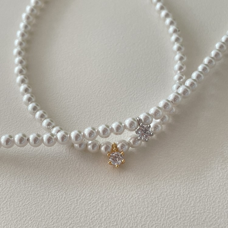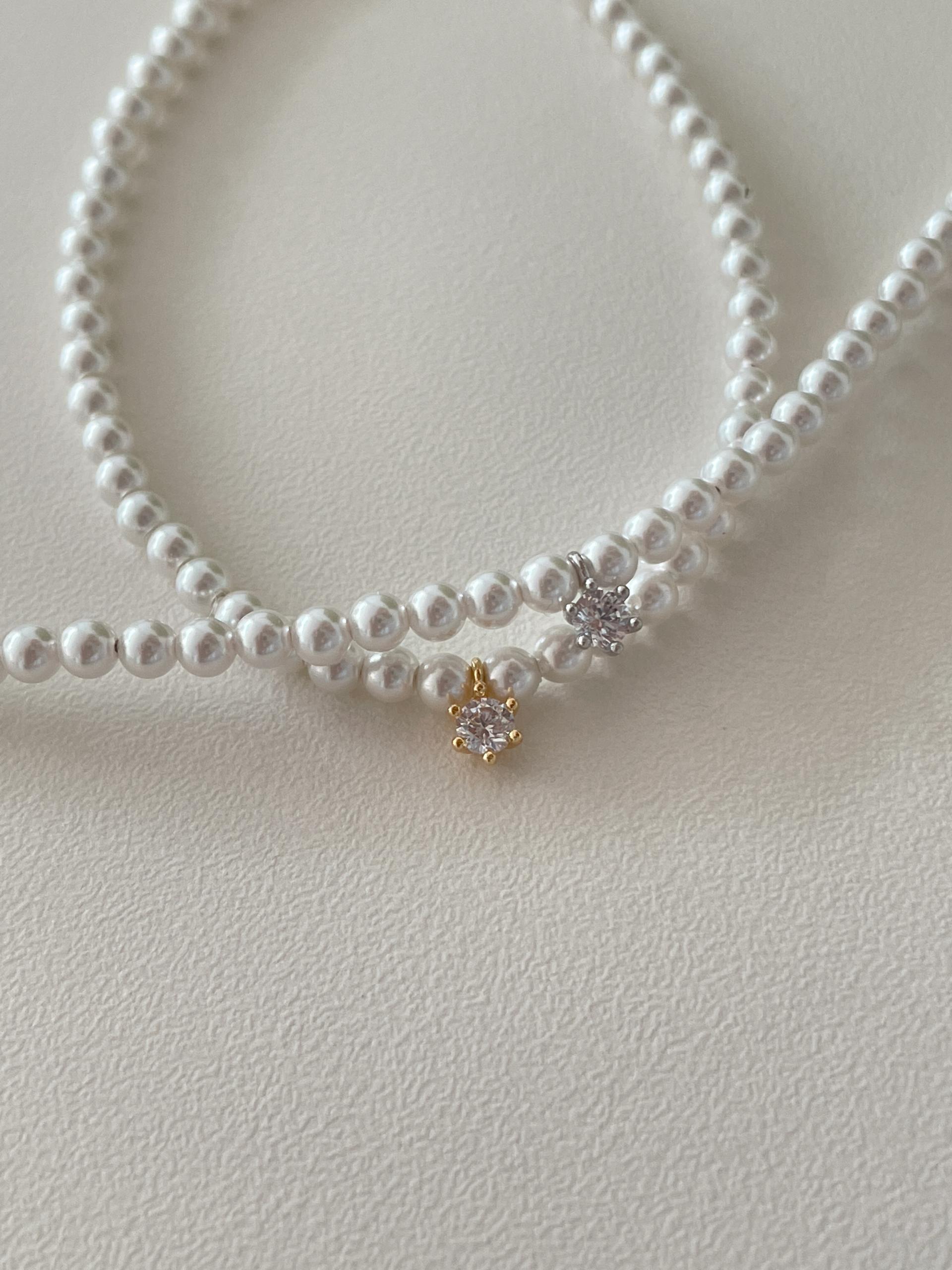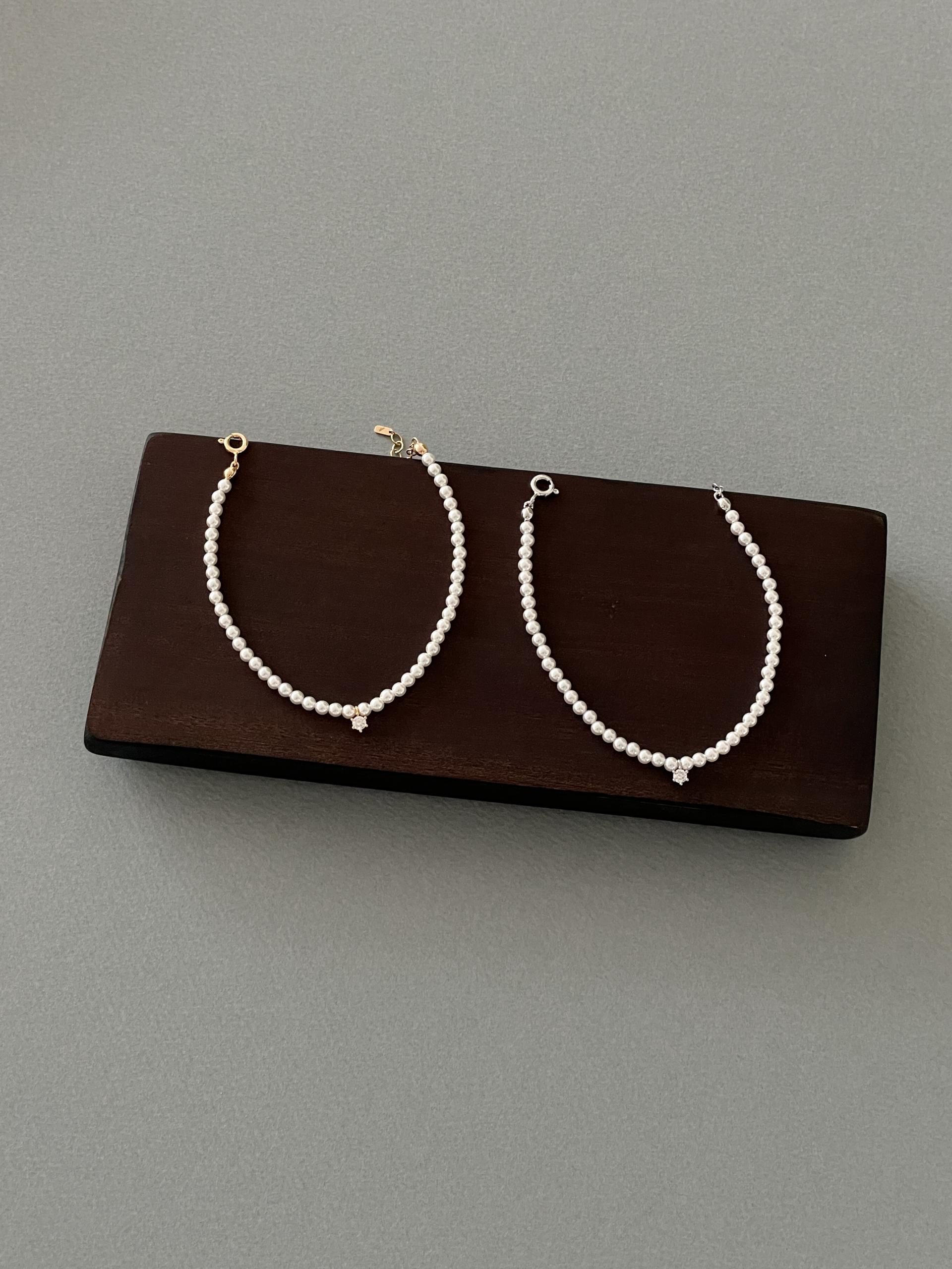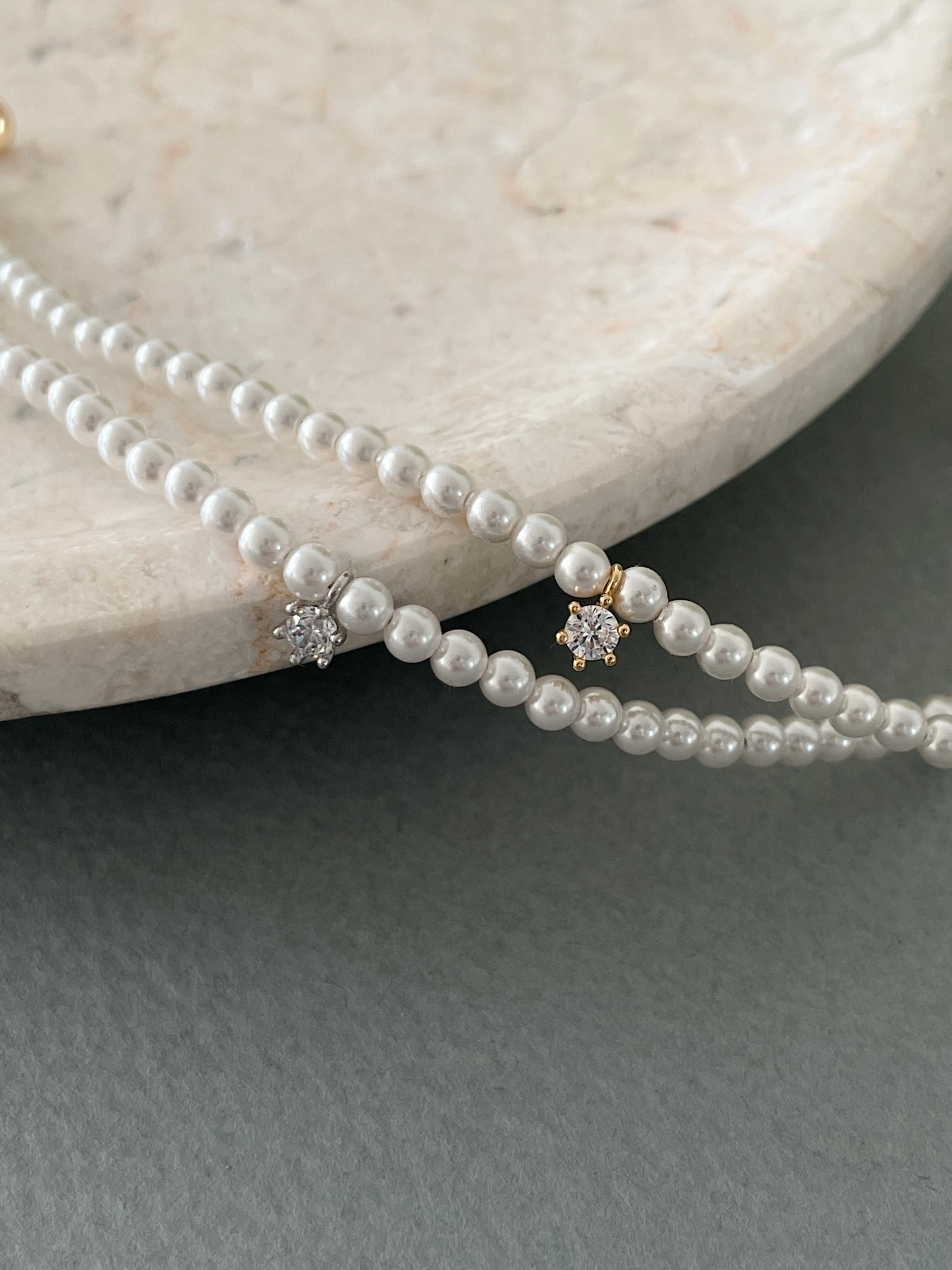스와로브스키 진주의 둥근 실루엣 아래